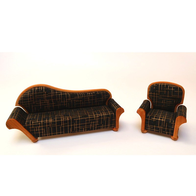 - Stoffmuster schwarz mit feinem goldenem Karomuster
